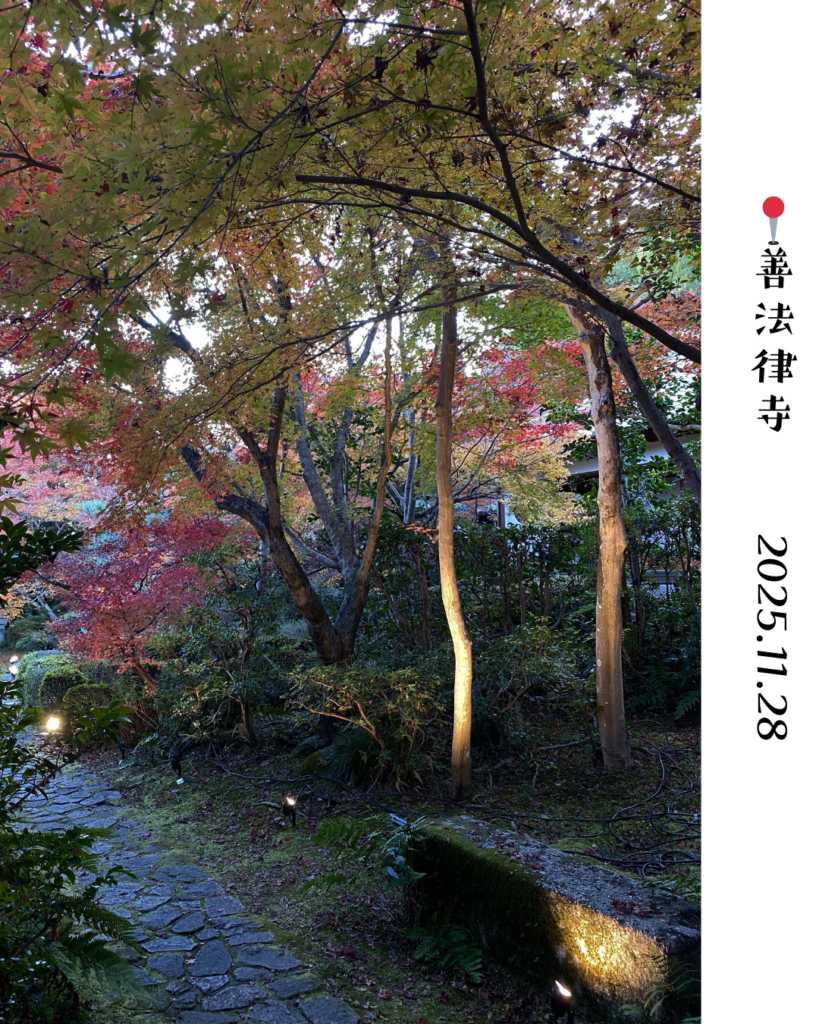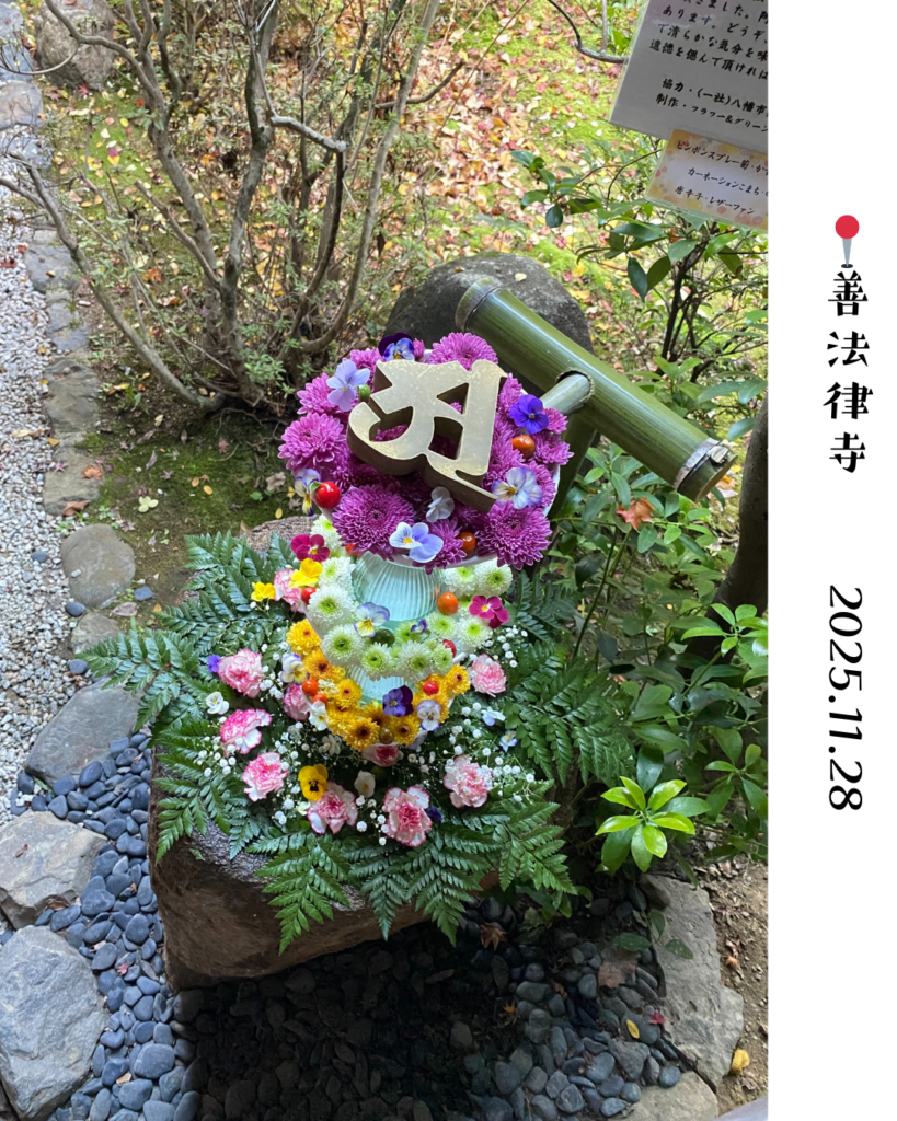 善法律寺では、本堂中庭で花手水が楽しめます。