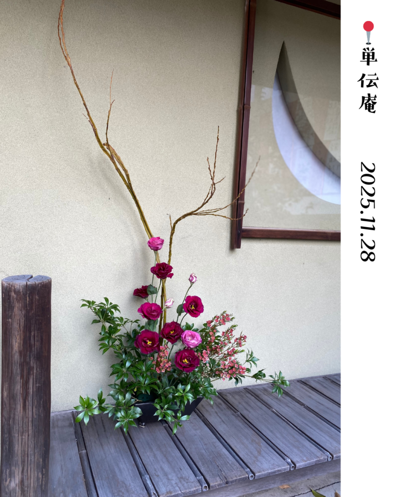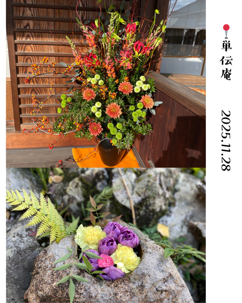 単伝庵では、境内の各所で花手水や生け花が楽しめます。