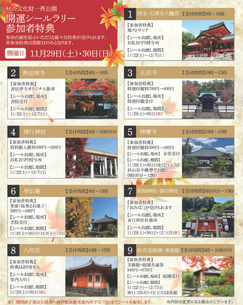 11/29・30の秋の文化財一斉公開と同時開催の『開運シールラリー』