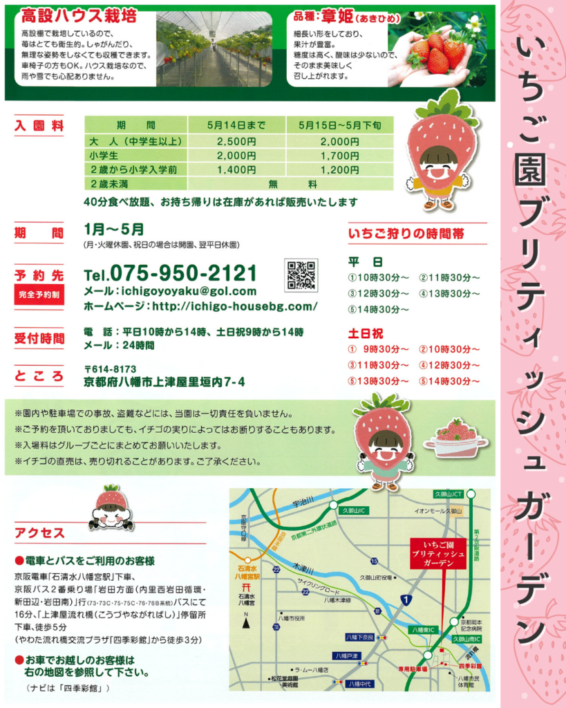 流れ橋の近くでいちご園を開くブリティッシュガーデンさんから