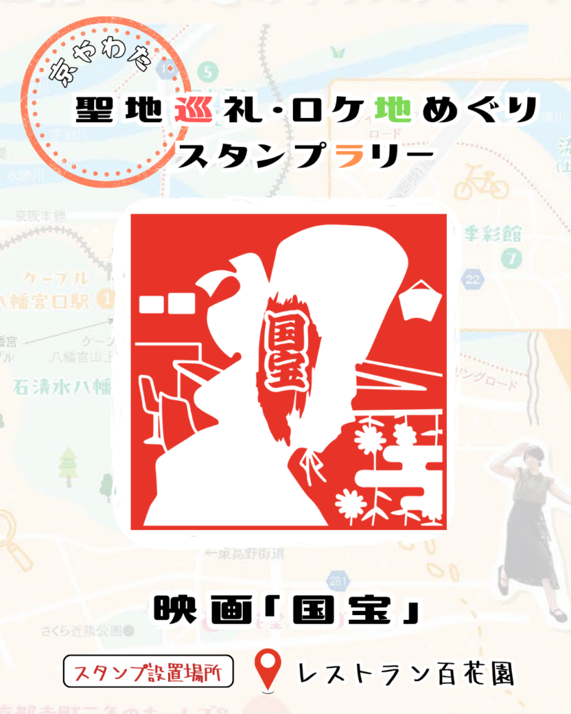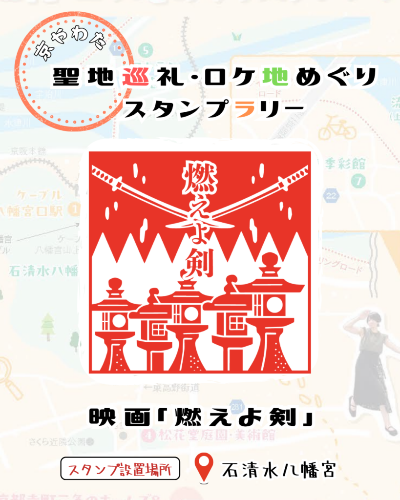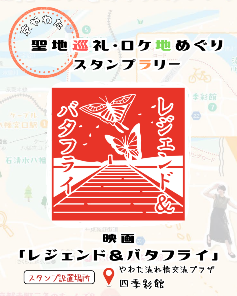 スタンプデザインは、八幡にも由縁のある織田信長の半生を描いた映画「レジェンド&バタフライ」をイメージしています。