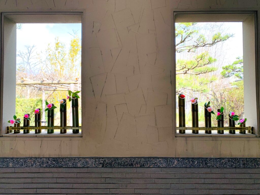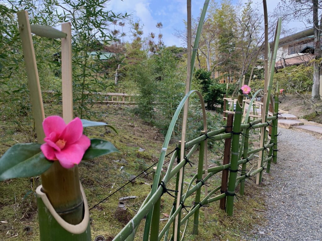 期間中、庭園内にて、つばきを彩る竹のあしらいがされるほか、文化協会、木器作家による展示が開催されます。