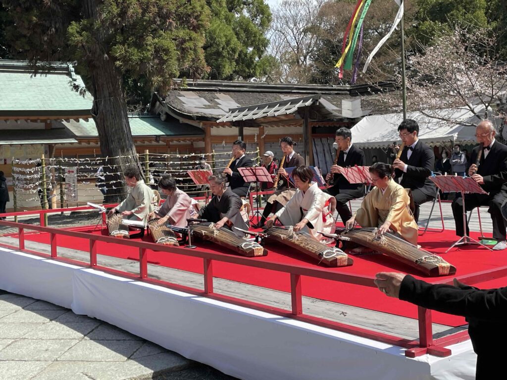 民謡や和琴などの演奏奉納、舞楽奉納、武道奉納演武、
