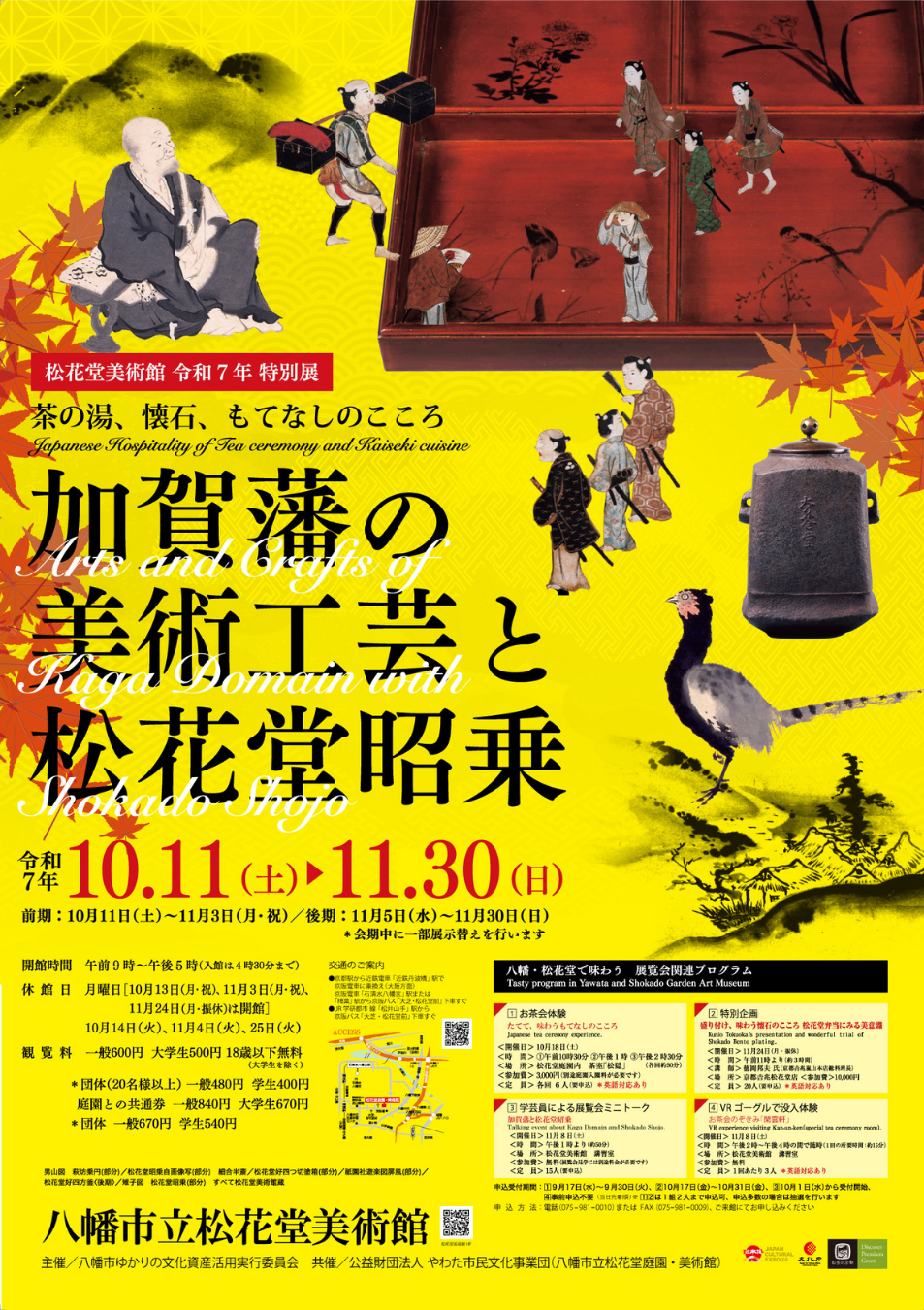 松花堂美術館では「令和7年特別展 加賀藩の美術工芸と松花堂昭乗 ~茶の湯、懐石、もてなしのこころ~」が開催中。