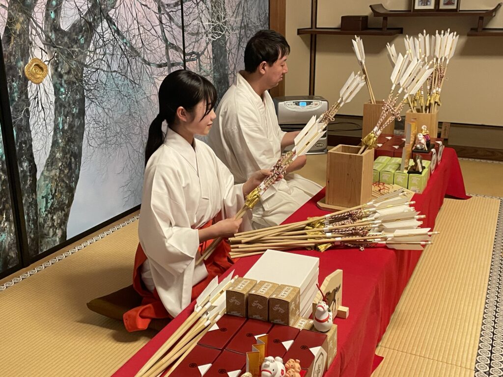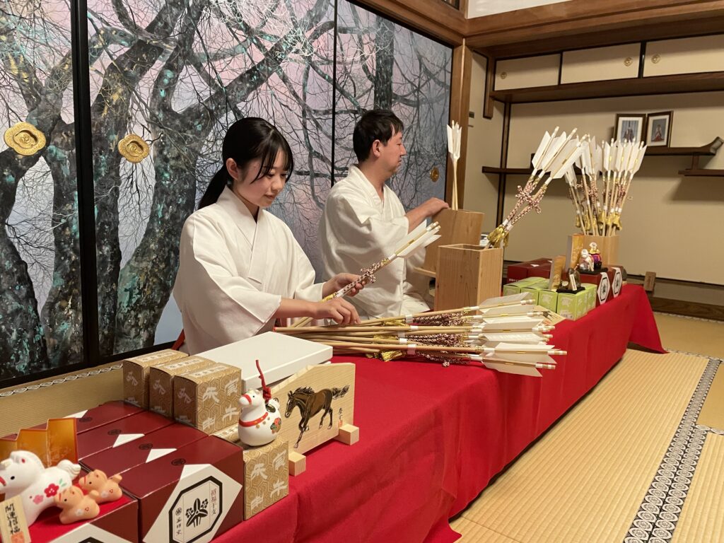 季節の情報2025年もあと少し。本日12月13日(土)、石清水八幡宮では迎春準備として八幡御神矢、縁起物の調整・点検が行われました。