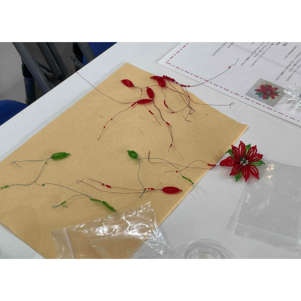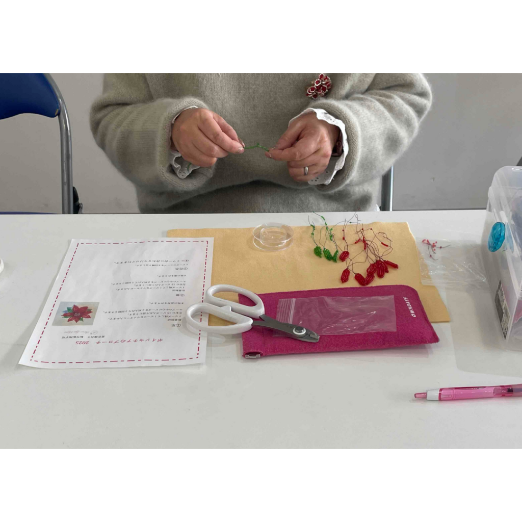 今回のレッスンは今の季節にもピッタリなポインセチアのブローチを作るとのことでみなさん穏やかな様子で楽しんで制作されていました。