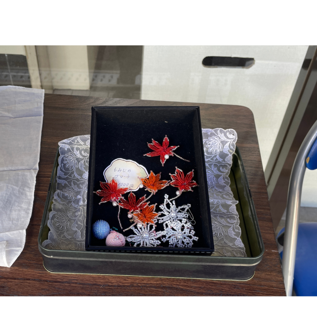 他にももみじのブローチやイヤリングなどのアクセサリーは販売もされていました。