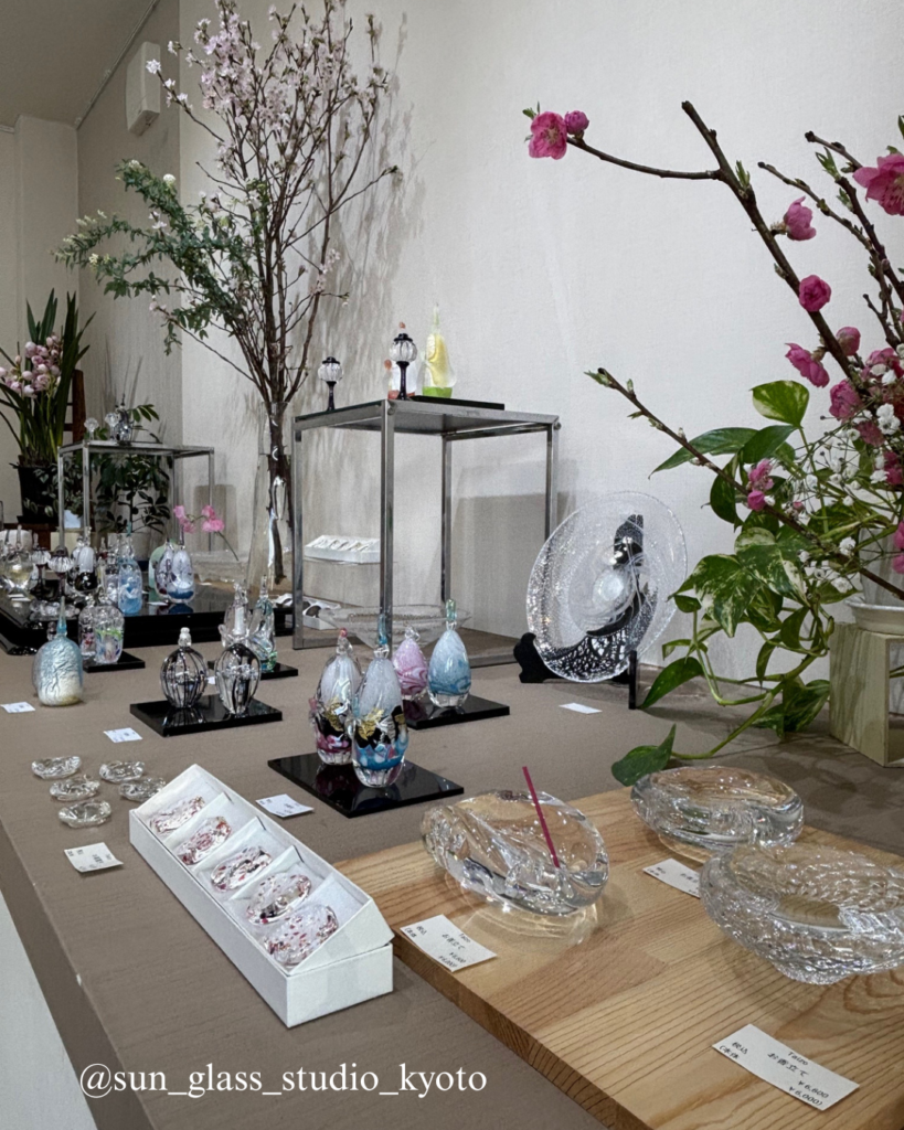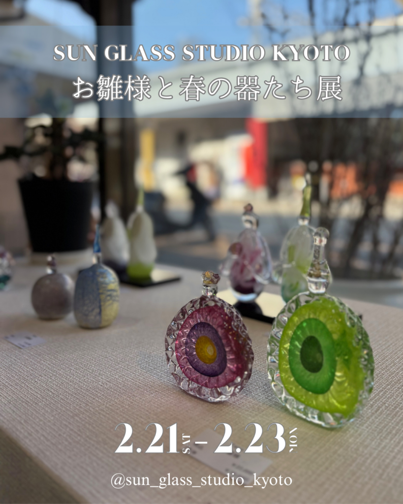 事務局より2月21日㊏~23日㊊㊗まで、京阪石清水八幡宮駅改札前の駅前ギャラリーにて、八幡市橋本のガラス工房SUN GLASS STUDIO KYOTOの「お雛さまと春の器たち展」が開催中です。