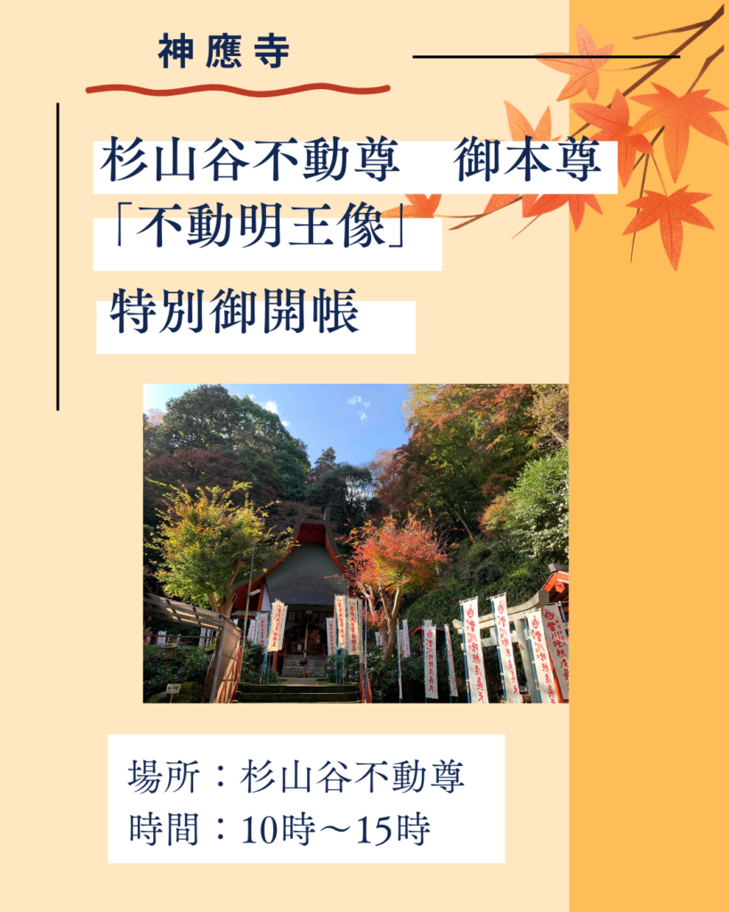 また、奥ノ院・杉山谷不動尊では、秘仏の「不動明王像」が特別開帳されます。